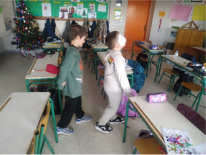 Στη συνέχεια περπάτησαν μια διαδρομή με καλυμμένα μάτια, έχοντας ως υποστήριξη είτε ένα μπαστούνι είτε τις προφορικές οδηγίες συμμαθητή τους. Με αυτόν τον τρόπο βίωσαν τις δυσκολίες αλλά και τη σημασία της συνεργασίας και της αλληλοβοήθειας.
