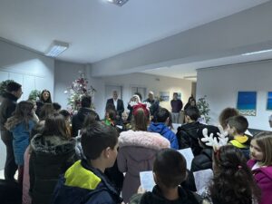 Τα κάλαντα έψαλαν οι μαθητές της Δ΄, της Ε΄ και της ΣΤ΄ τάξης στη διεύθυνση της Πρωτοβάθμιας Εκπαίδευσης Χαλκιδικής, στα γραφεία της Περιφέρειας Κεντρικής Μακεδονίας και στο Δημαρχείο Πολυγύρου.