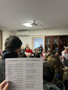 Τα παιδιά, τα οποία συνοδευόταν από εκπαιδευτικούς του σχολείου μας , έψαλλαν κάλαντα από διάφορες περιοχές της Ελλάδας με την καθοδήγηση της μουσικού του σχολείου μας.